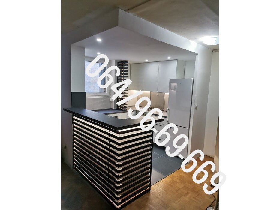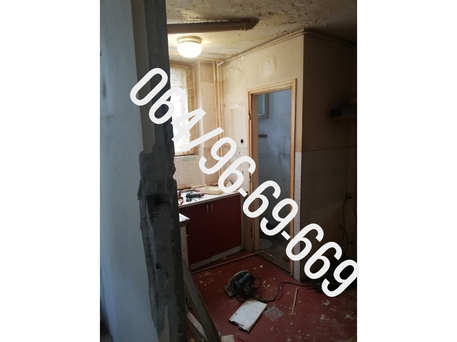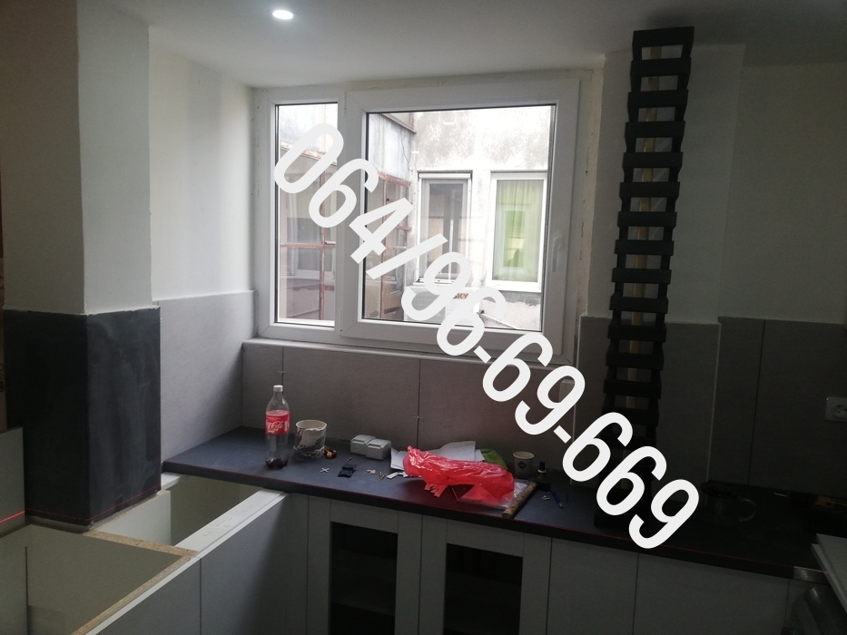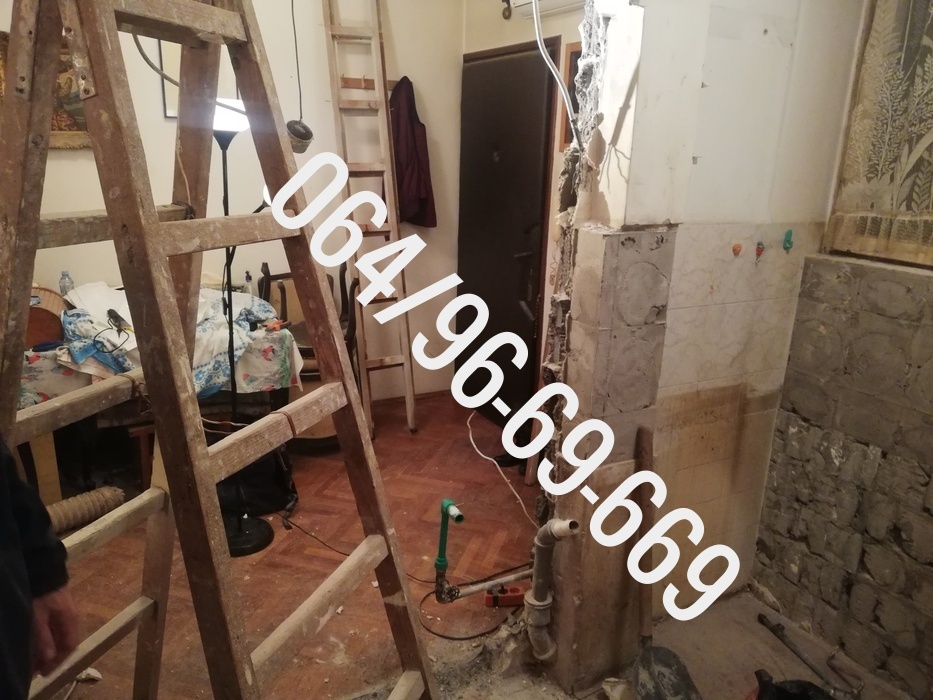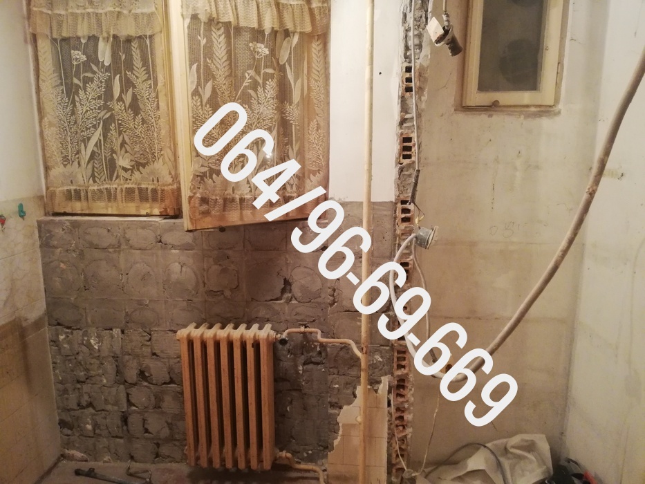 - - Rušenje jednog pregradnog zida u kuhinji, skidanje starih keramičkih pločica sa zida i