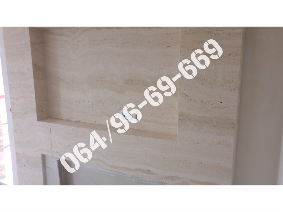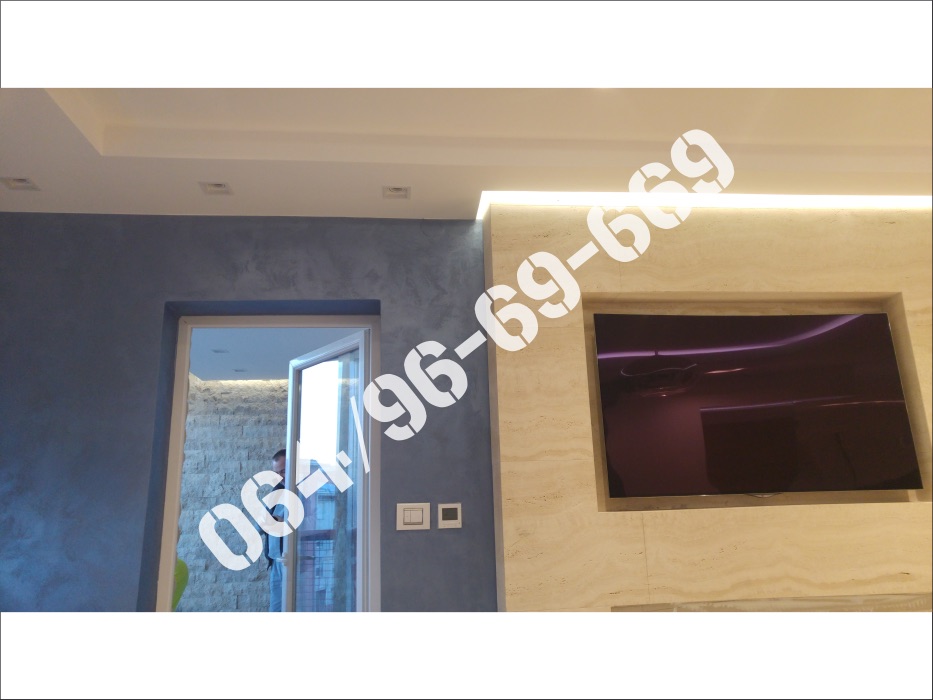 - pravljenje okvira oko televizora od gipsa sa oblaganjem Tranvertino kamenom iz Udina (Italija)