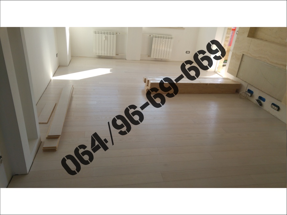 - stavljanje nove podne obloge (postavljen novi višeslojni tarket bajcovan u belu boju)